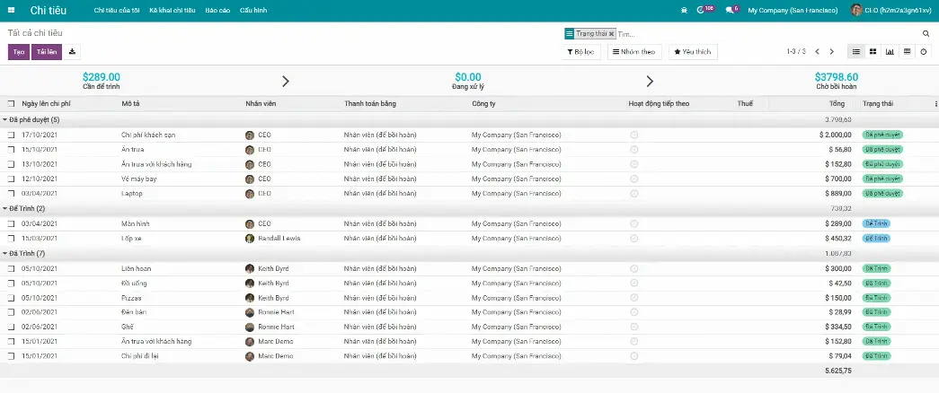 Quản lý tất cả chi tiêu liên quan đến nhân viên như: công tác phí, chi phí mua sắm nhỏ trong văn phòng…