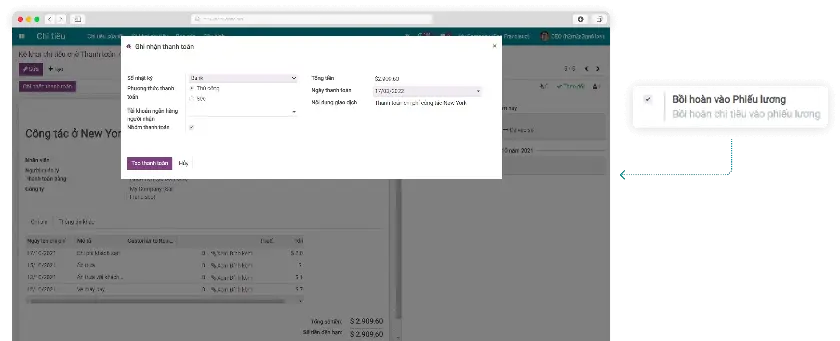 - Liên kết với ứng dụng Tạm ứng, hỗ trợ đối soát khoản tạm ứng với chi tiêu của cùng nhân viên.