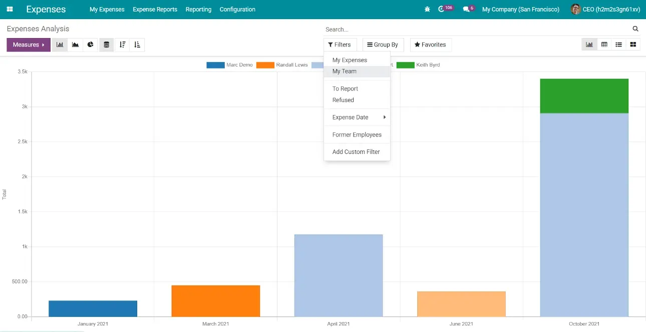 - Tự động tổng hợp số liệu chi tiêu của bản thân, nhân viên dưới quyền với nhiều tiêu chí, mang tới cái nhìn toàn diện về tình hình chi tiêu của doanh nghiệp.