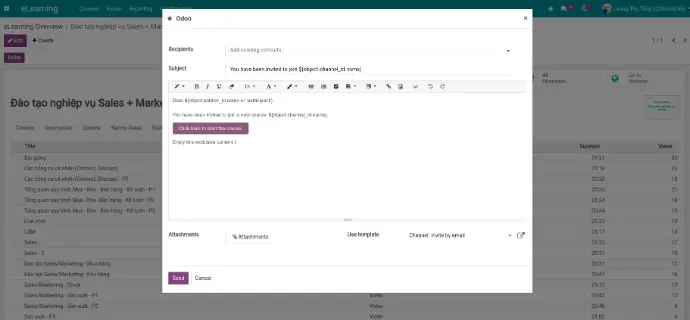 - Thiết lập mẫu email linh hoạt, tự động gửi thông báo thông tin khóa học tới những người có liên quan cùng đa dạng tài liệu đính kèm.
