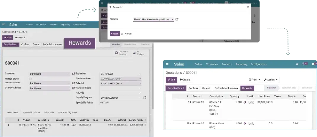- Gợi ý trả thưởng cho khách hàng bằng cách thêm sản phẩm quà tặng/chiết khấu trên đơn bán.