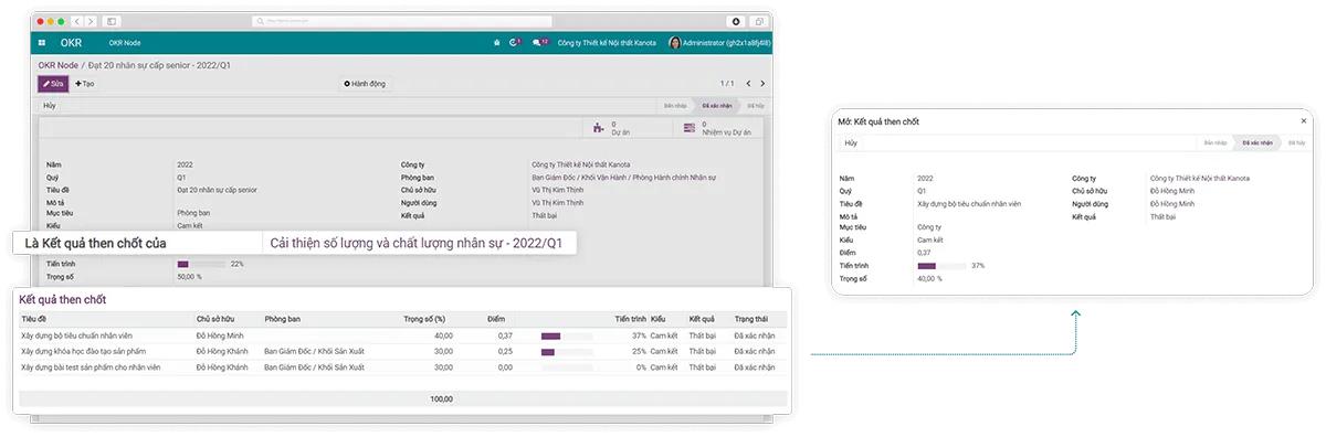 - Mối quan hệ phân cấp minh bạch: mỗi mục tiêu, kết quả then chốt đều gắn với nhân sự chịu trách nhiệm cụ thể.