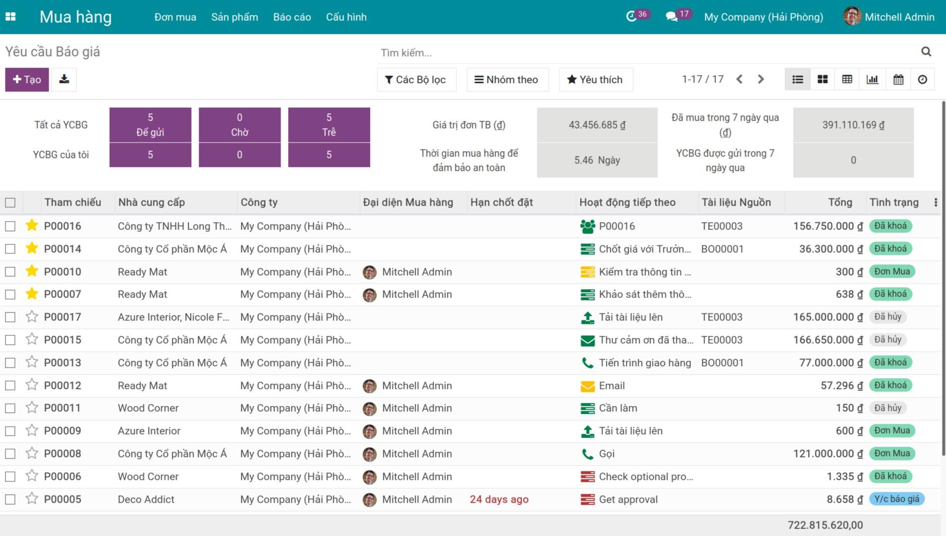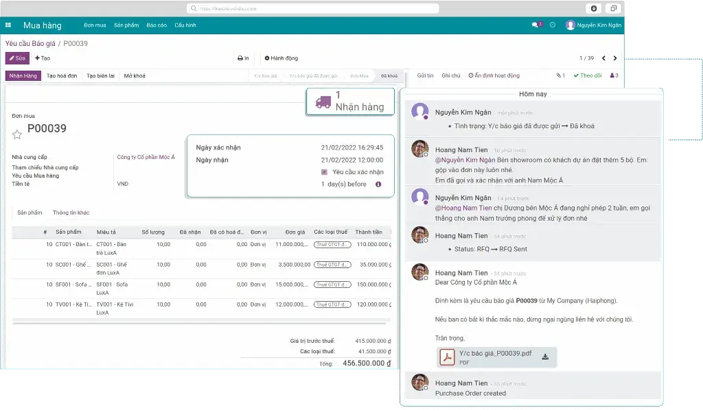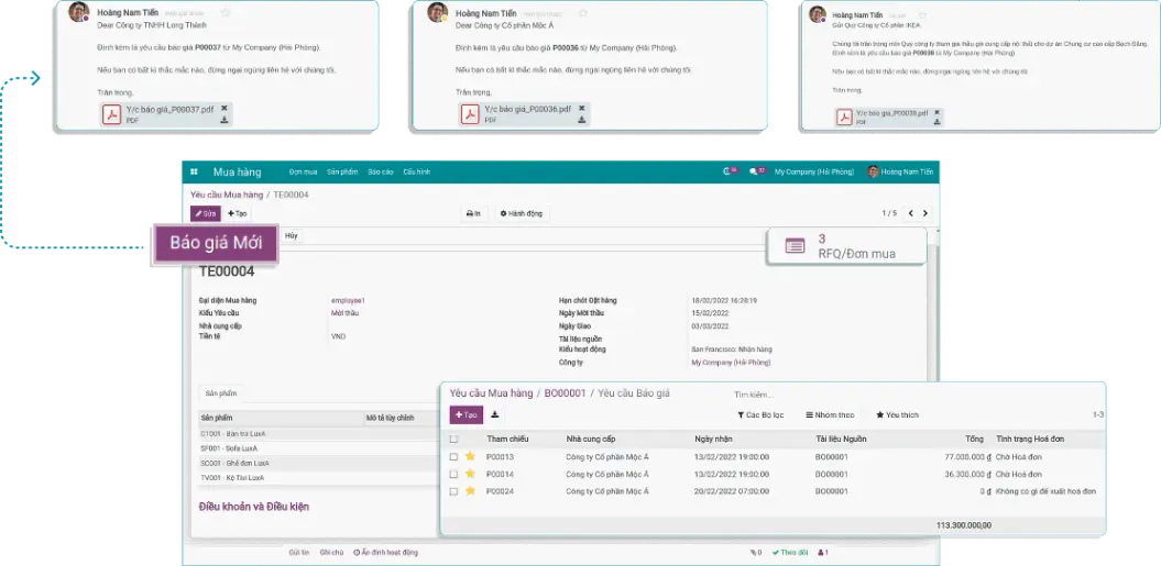Dễ dàng quản lý toàn bộ các Yêu cầu báo giá và Đơn mua hàng tại giao diện tổng quan.